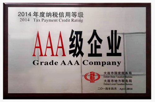 日前,按照《大连市纳税信用等级评定管理办法(试行)》的规定,经税务机关审查、评选,海关、工商等相关部门审验等环节,我公司被大连市国家税务局和大连市地方税务局评为2014年度纳税信用等级AAA级企业。纳税信用等级评定是对纳税企业遵守法律依法纳税信誉的综合评定,其中“AAA级纳税信用等级”是纳税信用等级中的最高级别,每两年评定一次,此次是我公司继2009年度获此殊荣后的再度当选。一直以来,我公司严格遵守国家税收法律法规,坚持诚信经营、依法纳税原则,在确保企业安全经营、提高经济效益的同时,积极为国家和地方财政做出贡献,树立了大连盐业良好的社会形象。